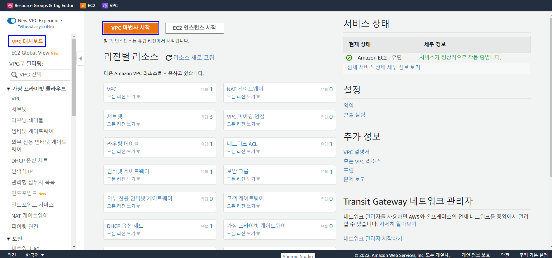 - 네트워크 테스트를 위해 각각의 리전에 EC2를 생성할 예정