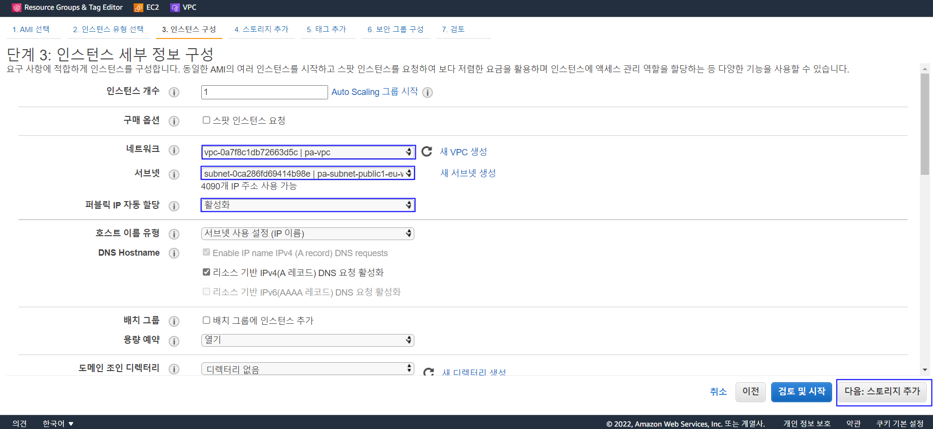 - 이름 : 파리 리전 인스턴스의 퍼블릭 IP 주소 + vpcpeer1