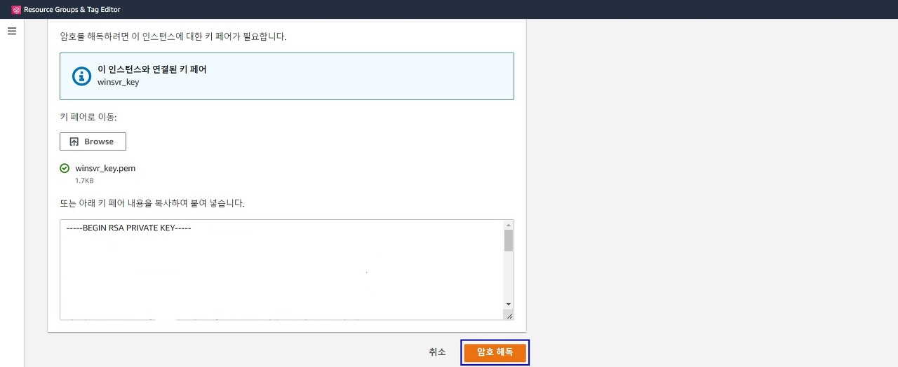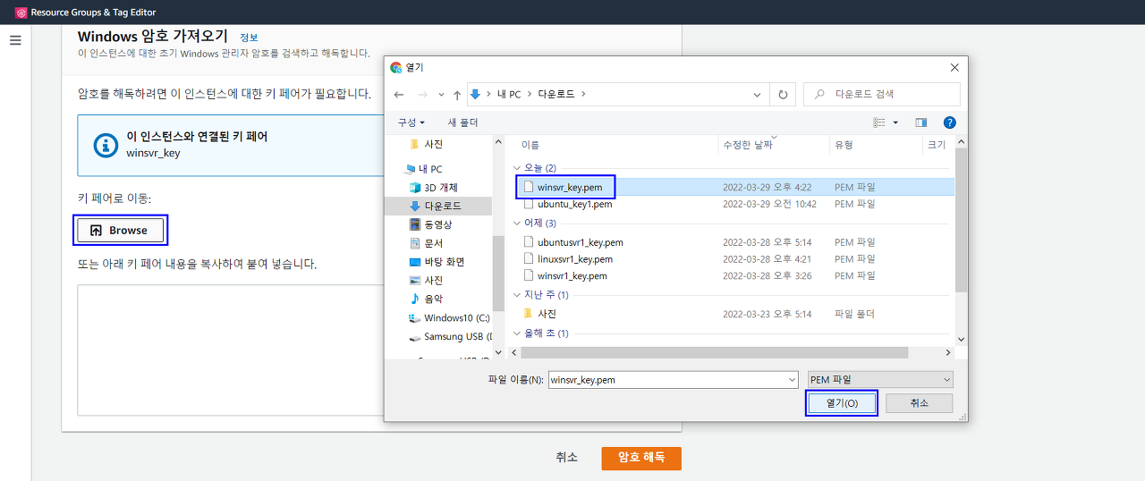 15) Browse 클릭 > .pem 확장자의 키(key) 열기