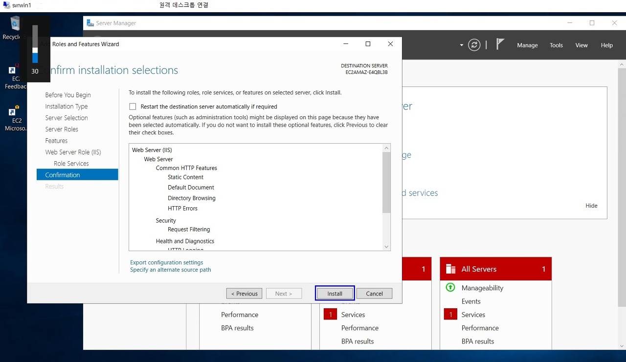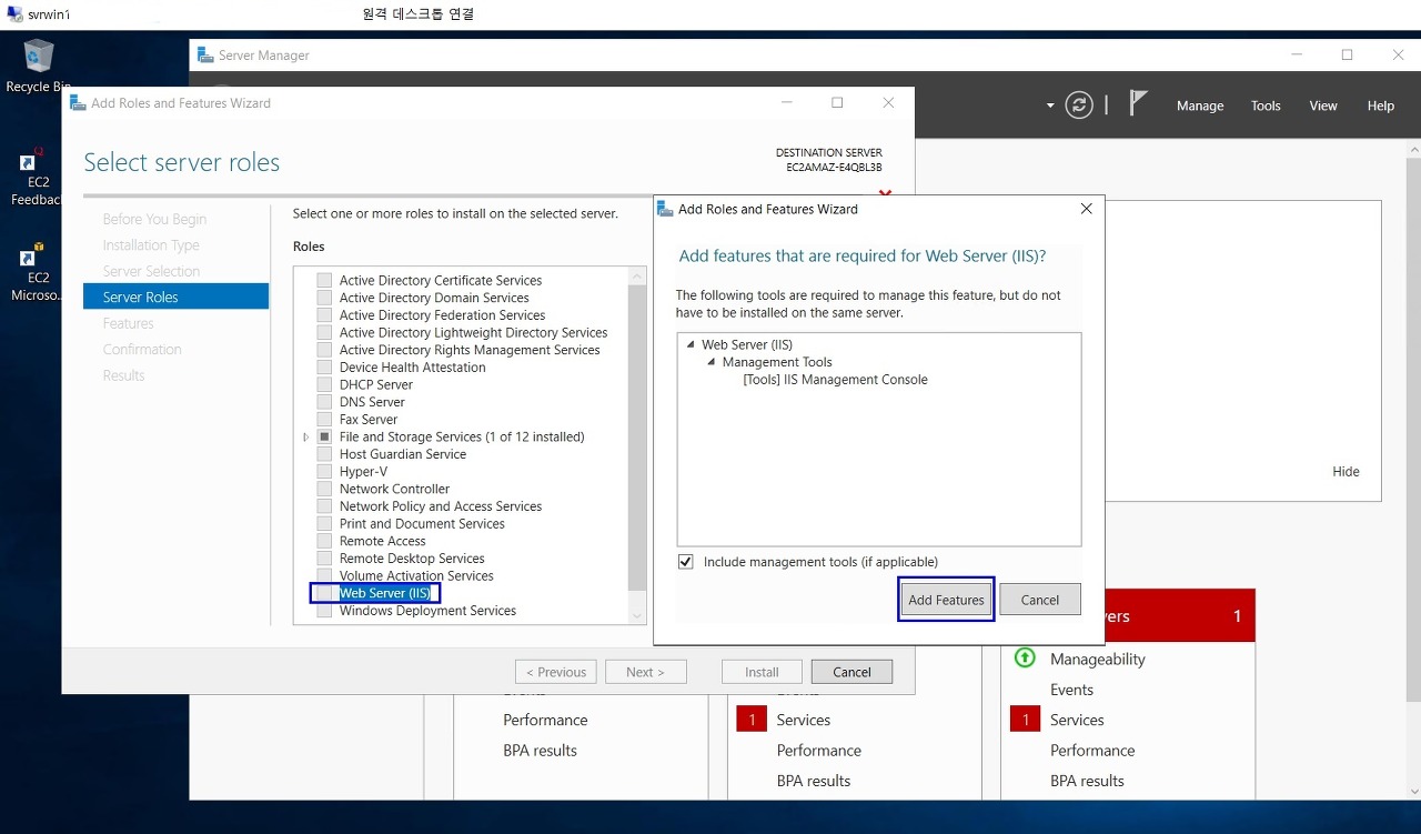 2) Add roles and features 클릭(대기 시간이 필요할 수 있음)