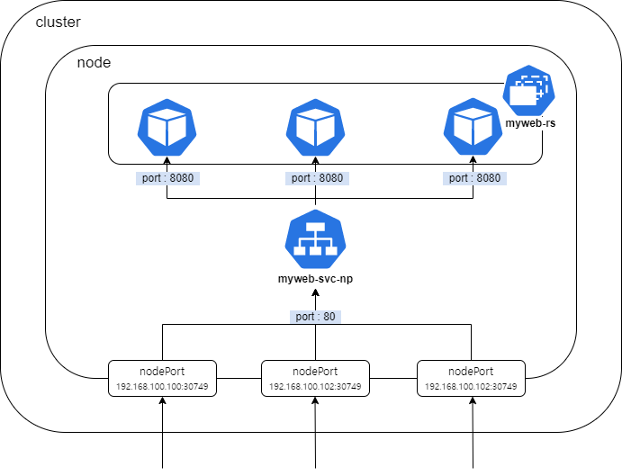 즉, NodePort는 ClusterIP 기능에 NodePort가 추가되는 것⭐이다 : NodePort = NodePort + ClusterIP